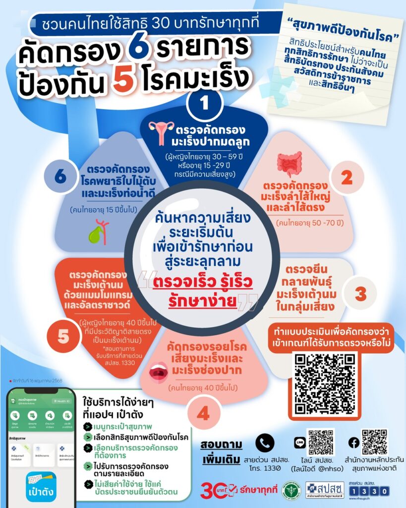 #30บาทรักษาทุกที่ #คัดกรองมะเร็ง #มะเร็งปากมดลูก #มะเร็งลำไส้ใหญ่ #มะเร็งใบไม้ในตับและมะเร็งท่อน้ำดี #มะเร็งเต้านม #มะเร็งช่องปาก #จิวเวลเนสส #jiuwellness #สุขภาพ #สปสช