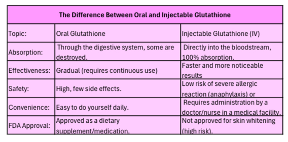 Warning: The use of glutathione for skin whitening should be carefully researched and should be under the guidance of a doctor.